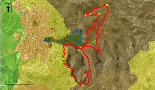 Comenzamos nuestro itinerario desde la urbanización de la parte alta del pueblo (1), donde podemos dejar aparcados los vehículos.